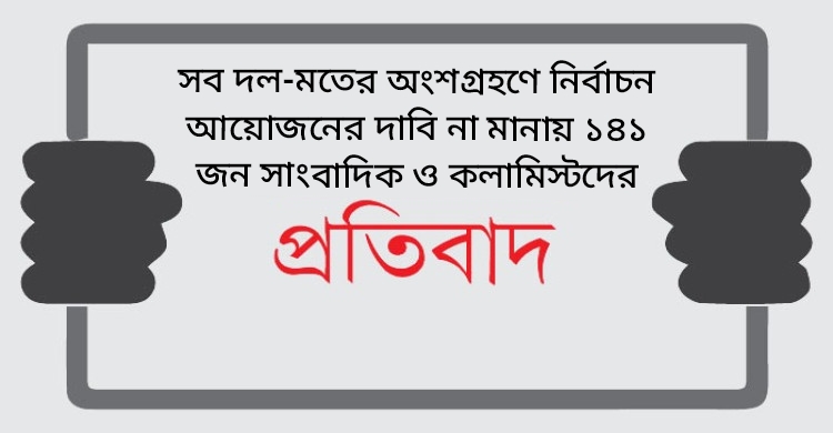 আইবিএন রিপোর্ট: কার্যক্রম নিষিদ্ধ আওয়ামী লীগসহ কয়েকটি দলের অংশগ্রহণ না থাকায় ত্রয়োদশ জাতীয় সংসদ নির্বাচন একপাক্ষিক ও অগ্রহণযোগ্য হবে—এমন উদ্বেগ জানিয়ে সব দলমতের অংশগ্রহণে নির্বাচন আয়োজনের দাবি না মানায় এর তীব্র প্রতিবাদ করেছেন দেশি-বিদেশি বিভিন্ন গণমাধ্যমে কর্মরত ১৪১ জন সাংবাদিক ও কলামিস্ট।